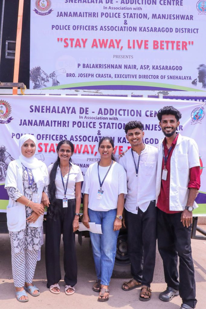 The event was attended by notable officials, including Mr. P Balakrishna Nair, ASP Kasaragod District; Ajith Kumar, CI Hosadurg Police station; Mr. Anoop, CI Manjeshwar; and Mr. Joseph Crasta, Executive Director of Snehalaya De Addiction Centre. The initiative aimed to educate the public, especially youth and parents, about the risks associated with substance abuse and encourage them to make informed choices.