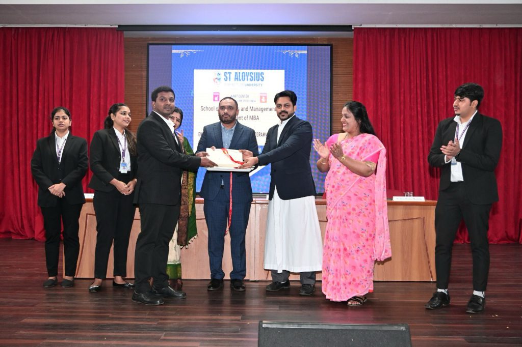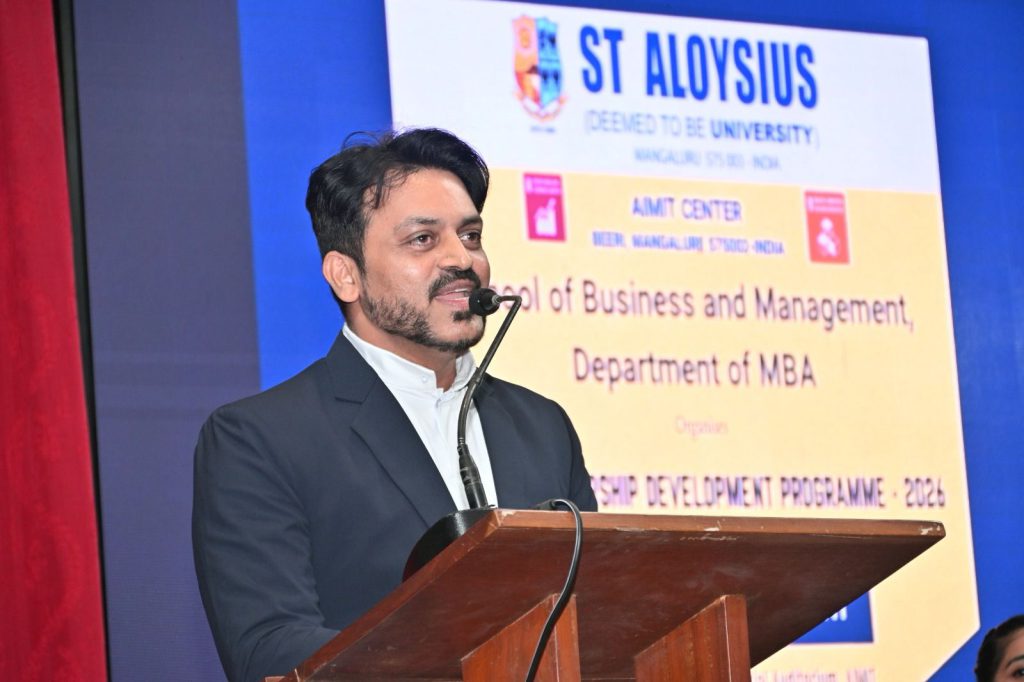 Mangaluru, Feb 10: The School of Business & Management, Department of MBA, St Aloysius (Deemed to be University), successfully organized the Entrepreneurship Development Programme (EDP) – 2026 on February 10 at the Arthur Shenoy Memorial Auditorium, AIMIT. The full-day event, held from 9:00 a.m. to 4:15 p.m., brought together eminent industry leaders, faculty, and aspiring student entrepreneurs for an engaging exchange of ideas and experiences.