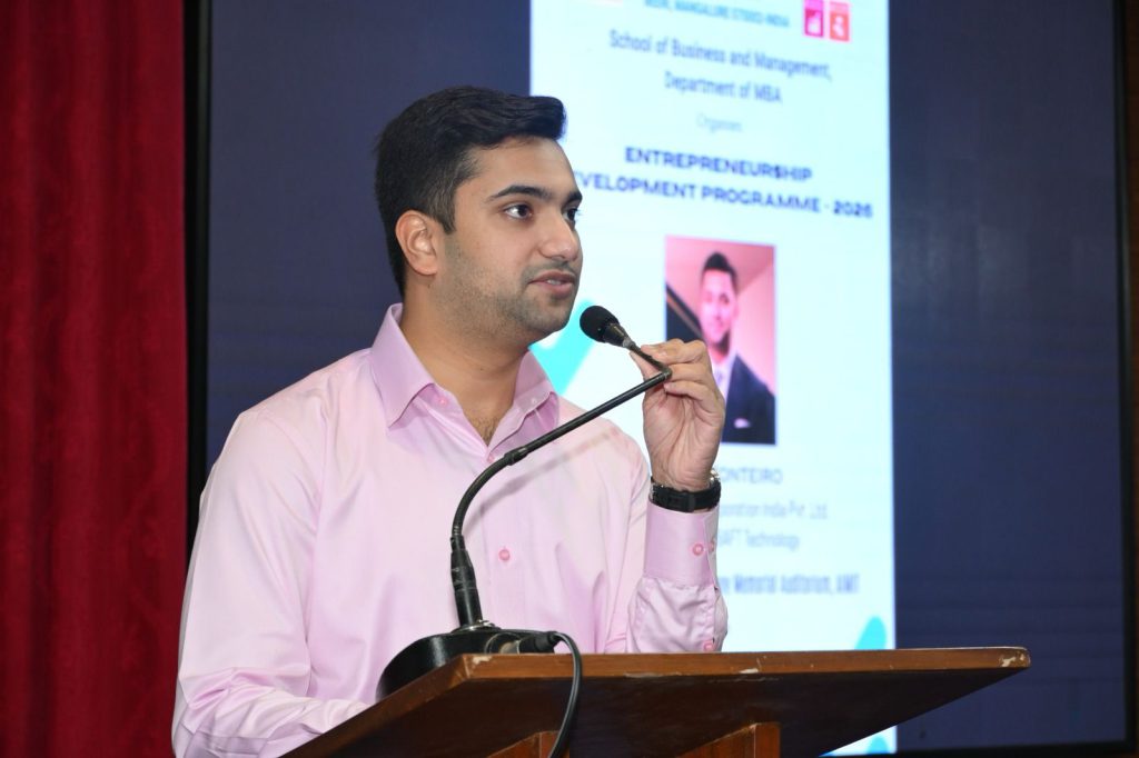 The concluding interactive session, ‘Mentorpitch – Where Young Ideas Meet a Wise Mind’ was led by Mrs. Vathika Pai, Proprietor of Vathika International Travels. Student entrepreneurs Thobismon Thomas, Joel Pinto, Aishwarya Francis, Manoj Kumar, Gwen D’Souza, Mohammed Taiseer, and Akash MJ presented their ventures and received constructive feedback.