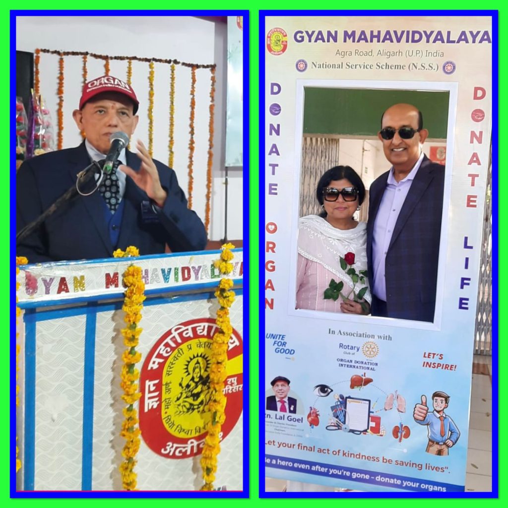 Aligarh, February 28 – Organ donation awareness took center stage at the Annual Day celebrations of Gyan Mahavidyalaya, Aligarh. Rotarian Lal Goel, Founder and Charter President of the Rotary Club of Organ Donation International and Chairman of the Organ Donation India Foundation & GYAN, attended as Chief Guest and Resource Person. He inspired students and faculty to become advocates for this life-saving cause.