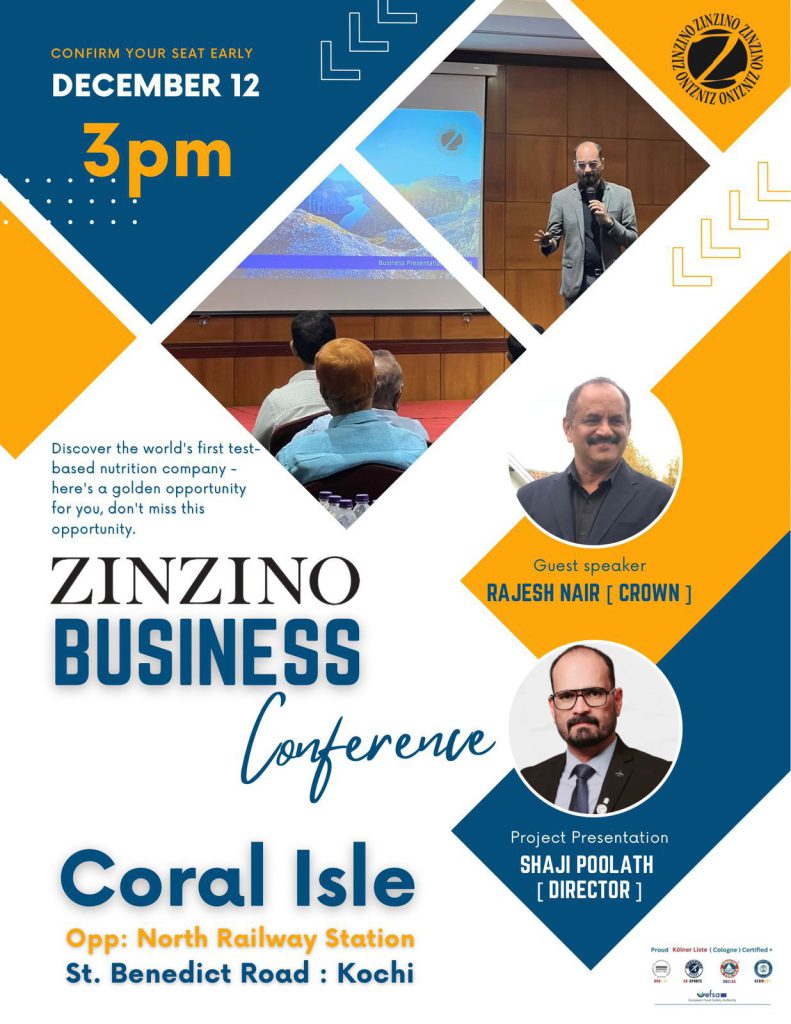 Featuring insights from Mr. Rajesh Nair (Crown) and Mr. Shaji Poolath (Director), the event is designed to be a masterclass in proactive living. Guests will learn about cutting-edge, science-backed nutritional wellness that forms the foundation of the Zinzino philosophy. More importantly, they will discover a globally-tested business model that allows individuals to cultivate health while building a sustainable wealth career; a career not bound by traditional ceilings or locations, offering the wisdom of entrepreneurship and the freedom of time.