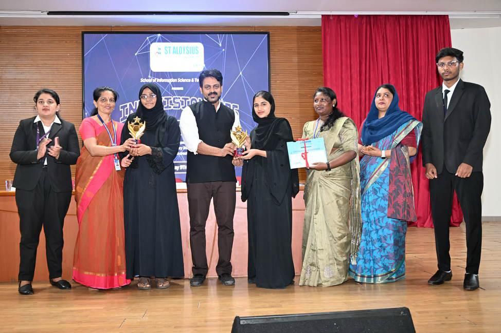 The ceremony was graced by distinguished dignitaries including the Chief Guest, Dr. Ronald Nazareth, Registrar of St Aloysius (Deemed to be University); Fr. Dr. Kiran Cotha SJ, Director of AIMIT; Dr. Hemalatha N, Dean of the School of Information Science & Technology; along with Ms. Nausheeda B S and Ms. Gana K V, the Staff Coordinators; and Mr. Justin Martin and Ms. Abhiskha Shetty, the Student Coordinators. The day featured six thoughtfully curated events that challenged and celebrated the participants’ skills across various domains. INFOVISION 2025 was a testament to the university’s commitment to fostering innovation, collaboration, and excellence in technology education.