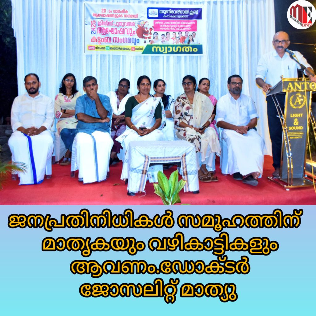 ജനപ്രതിനിധികൾ സമൂഹത്തിന് മാതൃകയും വഴികാട്ടികളും ആവണം.ഡോക്ടർ ജോസലിറ്റ് മാത്യു