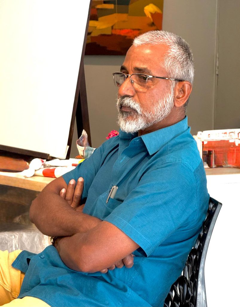 Born in 1968 in Karnataka and now living in Tamil Nadu, Kandan has been painting for over 30 years. His work has travelled far and showcased in Turkey, Bangladesh, Malaysia, Indonesia, Cambodia, and South Korea. He has received many honours, including the Grand Award at the International Art Biennale in Dhaka. But awards do not define him. His true identity is rooted in how deeply his art touches the soul.
