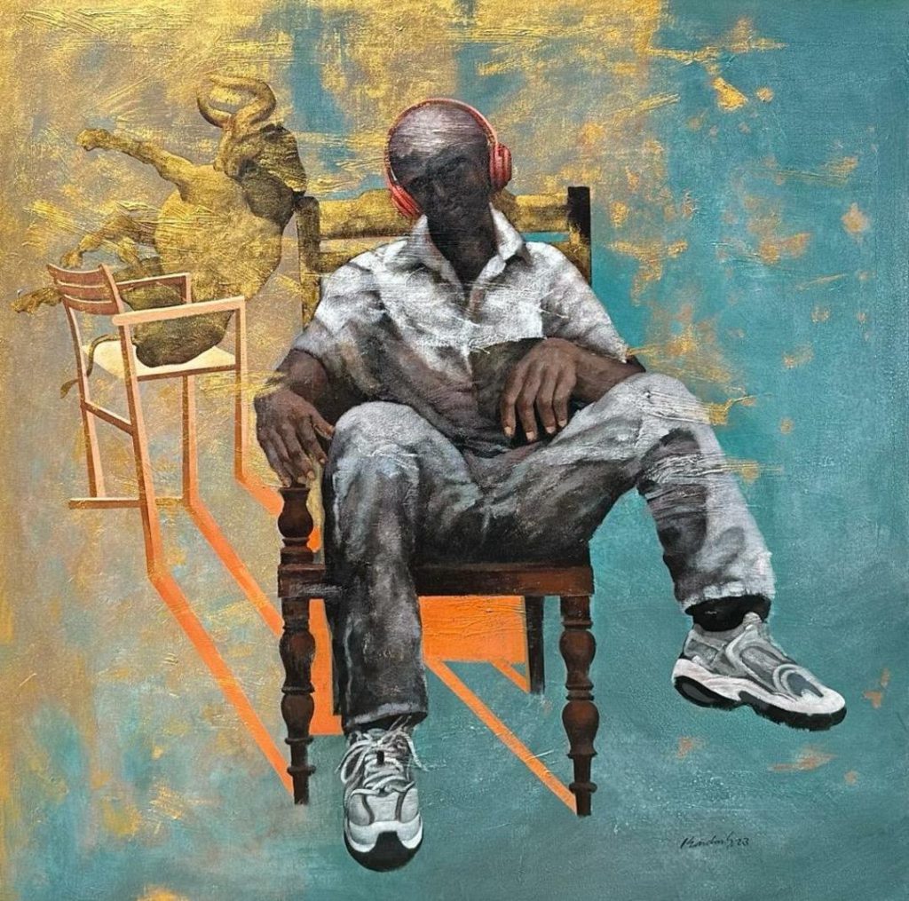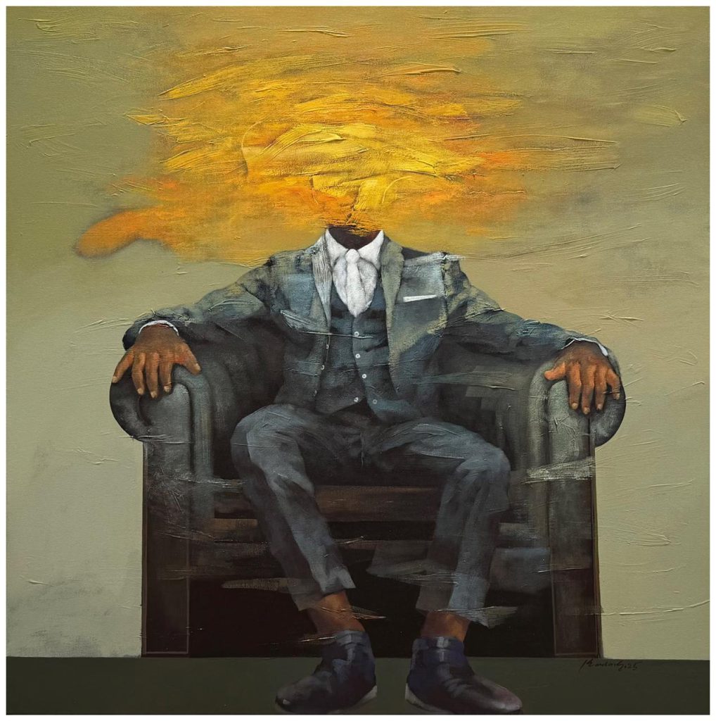 His latest series, “Contemporary Society”, explores the struggles of the middle class. Faceless figures, broken shapes, and a hauntingly repeated symbol; an empty chair, fill his canvases. The chair represents broken promises, lost justice, and those left out of systems of power. It sits quietly, like truth waiting to be heard. Kandan’s paintings make you pause. They ask you to feel.
