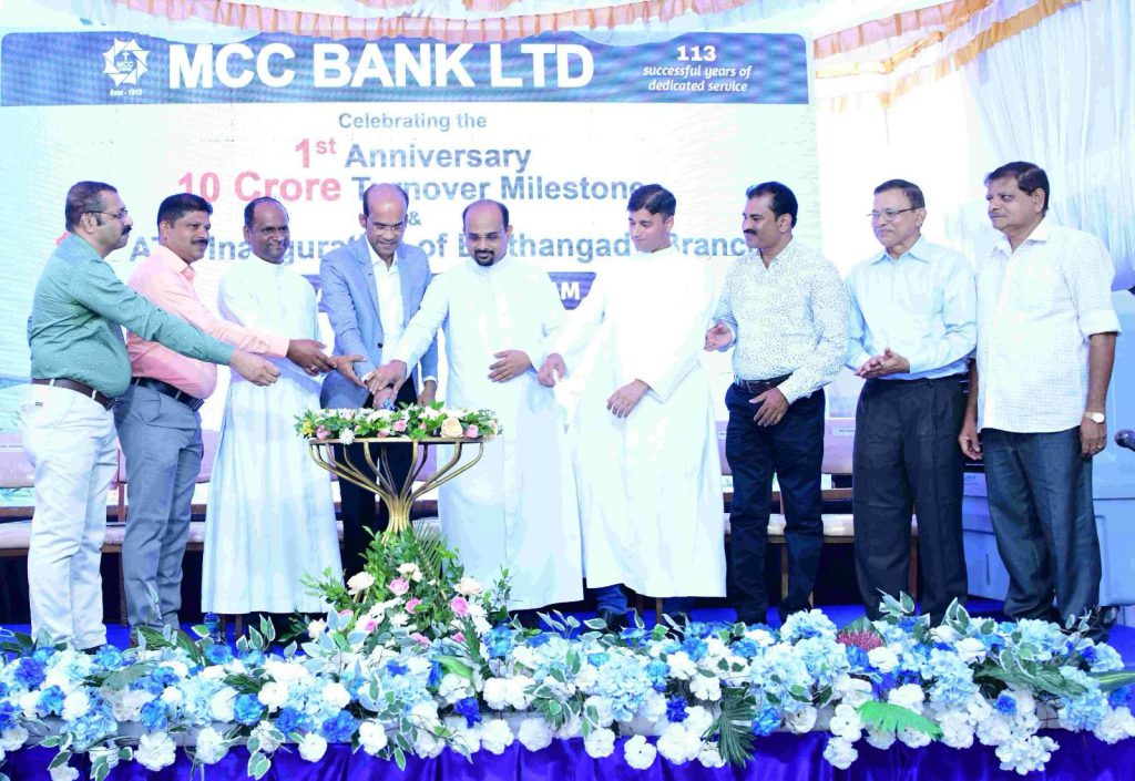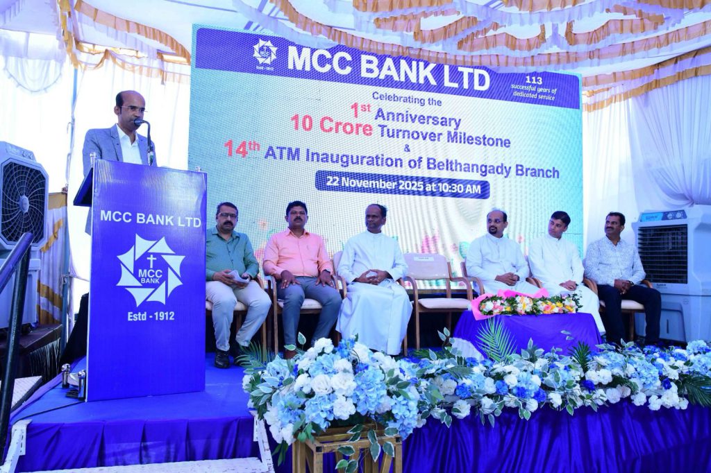 MCC Bank, Mangalore, celebrated the 1st anniversary and the achievement of Rs.10 crore business turnover of the Belthangady Branch, and inaugurated its 14th ATM at the Belthangady Branch on Saturday, November 22, 2025, at Vaibhav Arcade, near Church Road, Belthangady Highway, Belthangady. The ATM was officially inaugurated by Mr Sumanth Kumar Jain, Chairman, Excel Pre-University College, Guruvanakere, Belthangady.