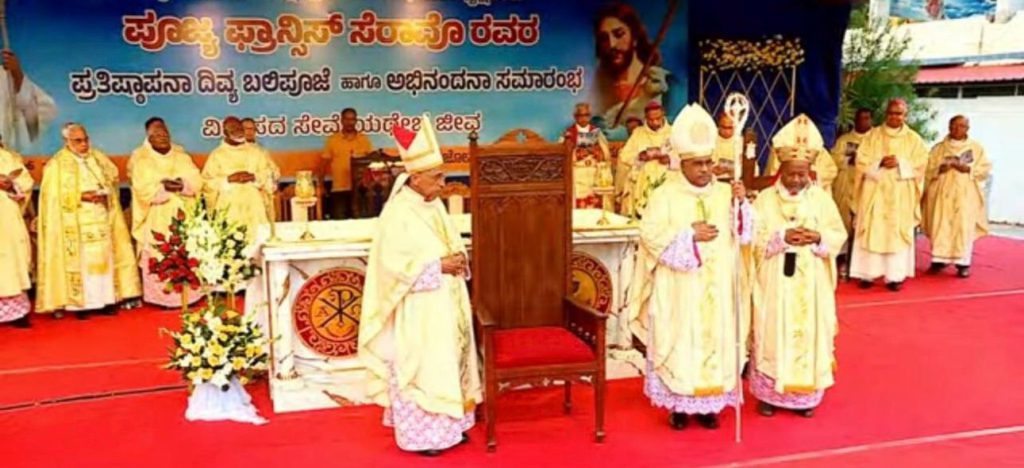 The solemn installation ceremony was officiated by Most Rev. Dr Peter Machado, Archbishop of Bangalore. Pope Leo XIV appointed Bishop Francis Serrao as the new bishop of Mysore. Bishop Serrao earlier served as the bishop of Diocese of Shimoga.