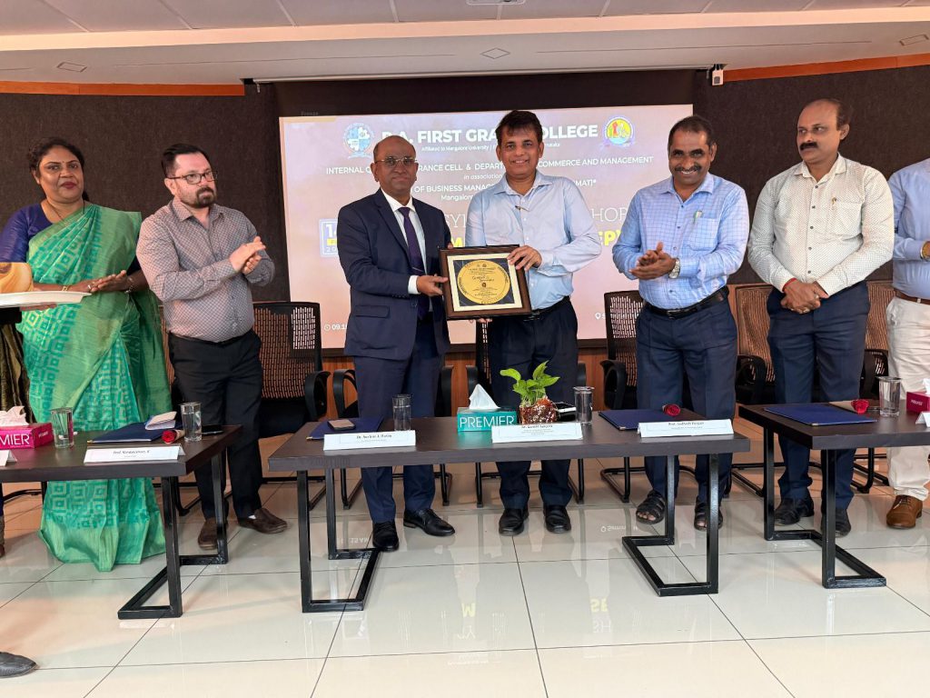 The Internal Quality Assurance Cell and the Department of Commerce and Management of P.A. First Grade College, in association with the Forum of Business Management Teachers (FOBMAT), organized a One Day Syllabus Workshop on IV Semester BBA (SEP) on 14 February 2026 at 10 a.m. in the Seminar Hall. The programme was held under the patronage of Mr. Abdulla Ibrahim, Managing Trustee, P.A. Educational Trust (R). Dr. Ganesh Sanjeev, Registrar (I/c), Director (I/c), College Development Council and Senior Professor of Physics & Head- Microtron Centre, Mangalore University, graced the occasion as Chief Guest. The function was presided over by Dr. Surfraz J. Hasim, Principal, P. A. First Grade College. Dr. Chandrashekara K., President, FOBMAT; and Prof. Nandakishore K., Secretary, FOBMAT were the Guests of Honor. Ms Vanishree Y, IQAC Coordinator and Dr Shijin, Associate Professor were present during the program.