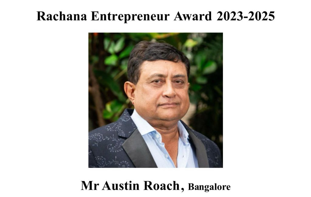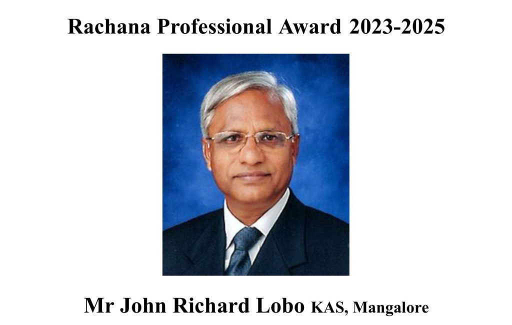 Rachana Professional Award 2023–2025 – Mr. John Richard Lobo KAS, Mangalore | Rachana Entrepreneur Award 2023–2025 – Mr. Austin Roach, Bangalore | Rachana NRI Entrepreneur Award 2023–2025 – Mr. Pratap Mendonca, Dubai | Rachana Agriculturist Award 2023–2025 – Dr. Godwin Rodrigues PhD, Belvai, Mangalore