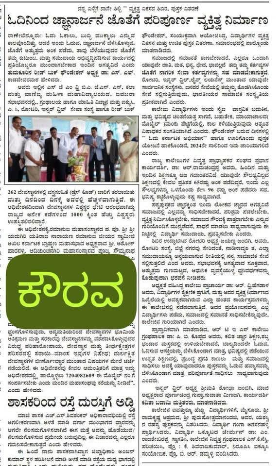 Read this article in this critical distinction. It is about the vital mission of the Read Book Foundation, and their initiatives under the visionary leadership of President Dr. S. L. Kadadevarmath. Searching and finding the most profound purpose of Libraries in the modern era.