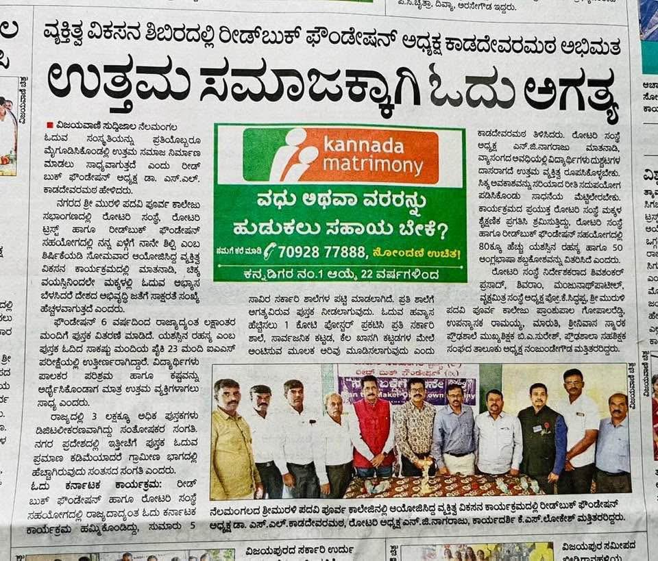 The Read Book Foundation is to be immensely appreciated for what it does and for why it does it. Under Dr. Kadadevarmath’s leadership, it is offering the youth of Karnataka an elevator to elevated thought. It reminds us that in the relentless roller coaster of the modern world, the steady, rhythmic, and profound act of reading a book is one of the most wholesome and necessary practices we can preserve. The Read Book Foundation is cultivating readers and help them nurture mindful, well, and deeply connected human beings.