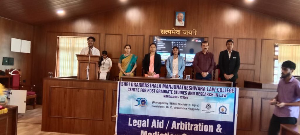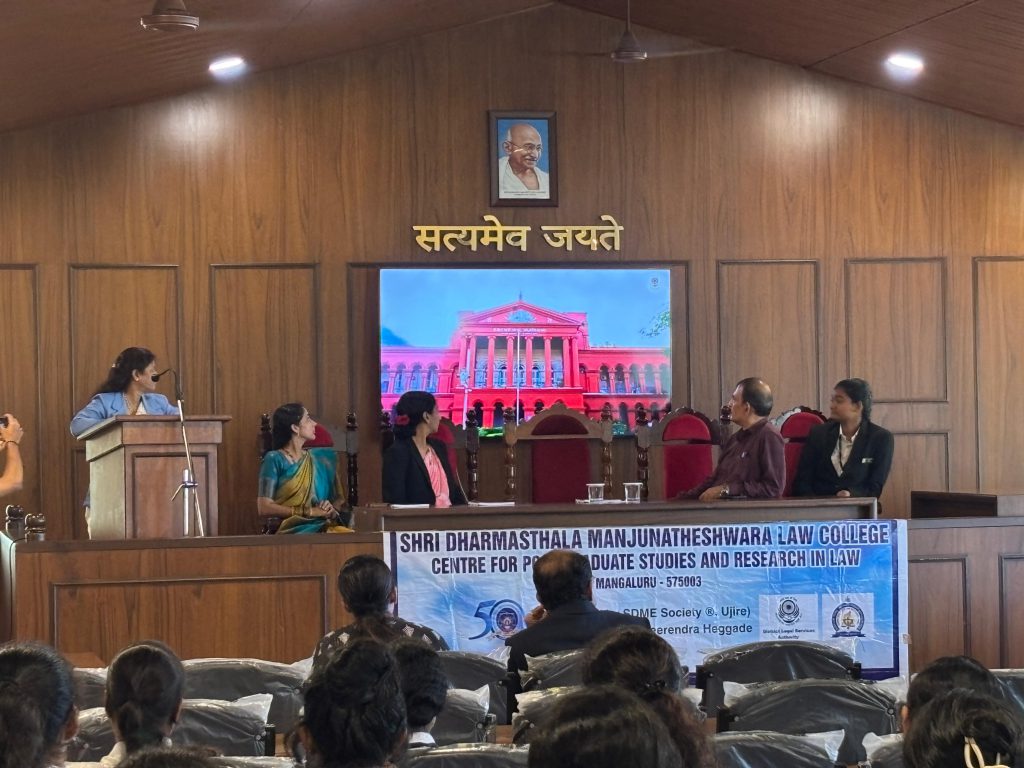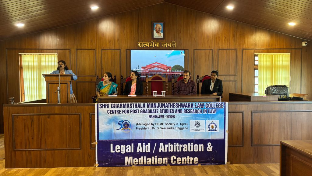 Mangaluru, September 4, 2025 — Shri Dharmasthala Manjunatheshwara (SDM) Law College, Centre for Postgraduate Studies and Research in Law, Mangaluru, hosted an Orientation Programme on the Functioning of Legal Aid Cell under its Legal Aid and Extension Cell/Arbitration Centre. The initiative, organized as part of the college’s IQAC activities, aimed to strengthen awareness about the critical role of legal aid in ensuring access to justice for all.