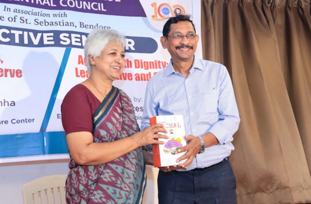 Addressing the gathering on “Ageing with Dignity: Learn to Live and Give,” Mr. Joseph Menezes, a noted entrepreneur and philanthropist, offered valuable insights on leading a life of dignity supported by financial security. He encouraged participants to cultivate the habit of disciplined saving, even in small measures, and highlighted the importance of financial literacy, prudent investment, and thoughtful long-term planning. His practical guidance resonated strongly with the attendees.