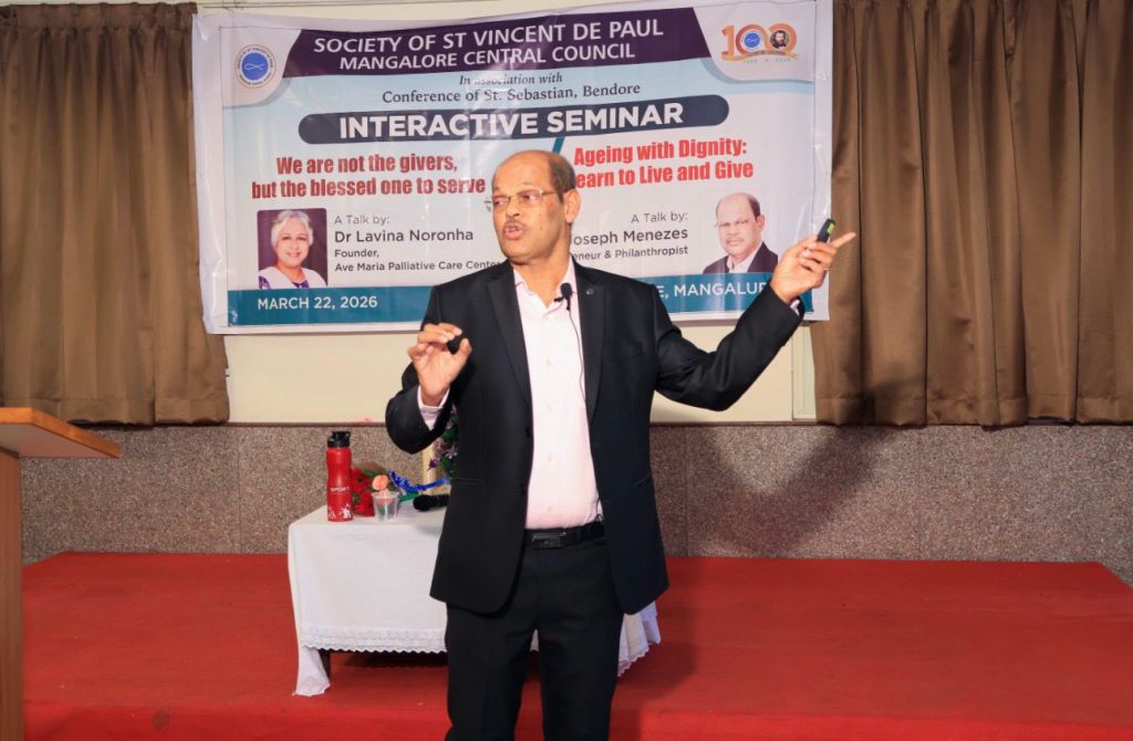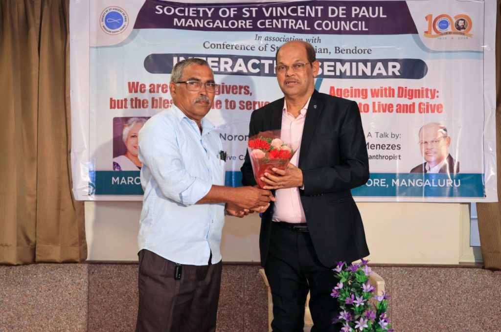The seminar began with a prayer service led by Fr. Flavian Lobo, Spiritual Advisor of SSVP Mangalore Central Council, invoking God’s blessings on the gathering. The programme was ably coordinated by Mr. Joe Coelho.