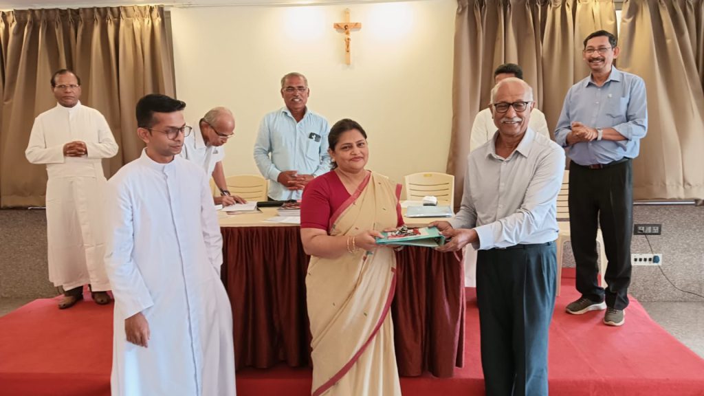 Preetha Lobo, who belongs to the Bendore Conference, was administered the oath of office by Fr Flavian Lobo, Spiritual Advisor, in the presence of Fr Francis D’Souza, former Spiritual Advisor, and Fr Walter D’Souza, Parish Priest of Bendore.