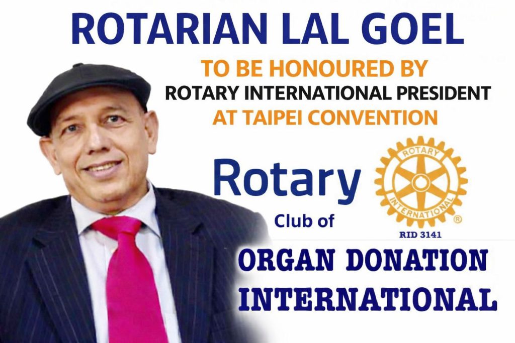 ROTARIAN LAL GOEL TO BE HONOURED BY ROTARY INTERNATIONAL PRESIDENT AT TAIPEI CONVENTION