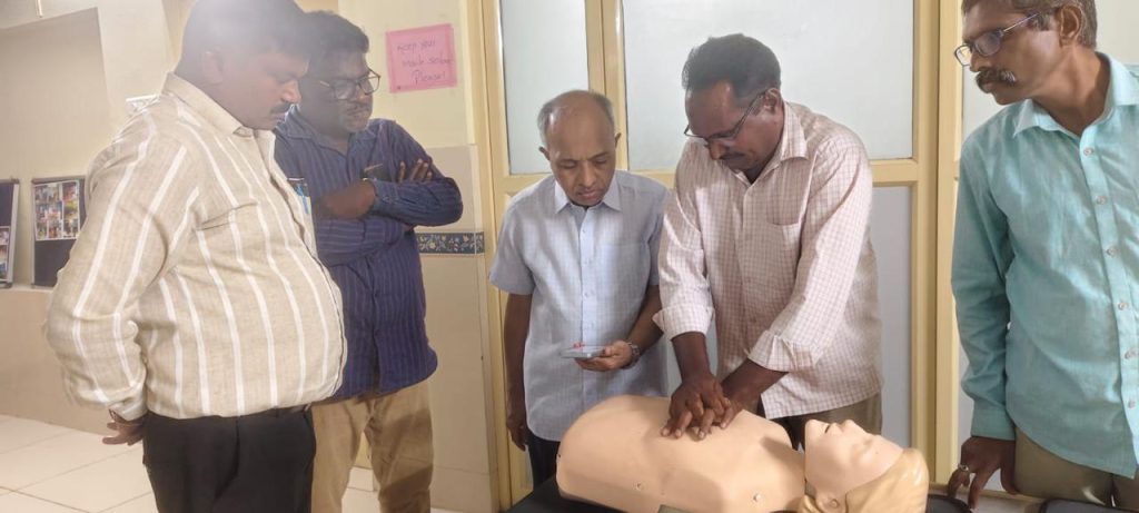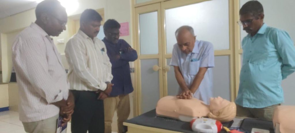As part of this initiative, a year long campaign is planned to train a wide cross section of the population. This includes staff in government and private offices, students and staff in schools, colleges and universities, NCC and NSS cadets, police personnel, district court staff, bank employees, railway and RTC staff, as well as family members of patients. Training will be conducted using Q CPR mannequins and AED trainers to ensure high quality, practical learning.